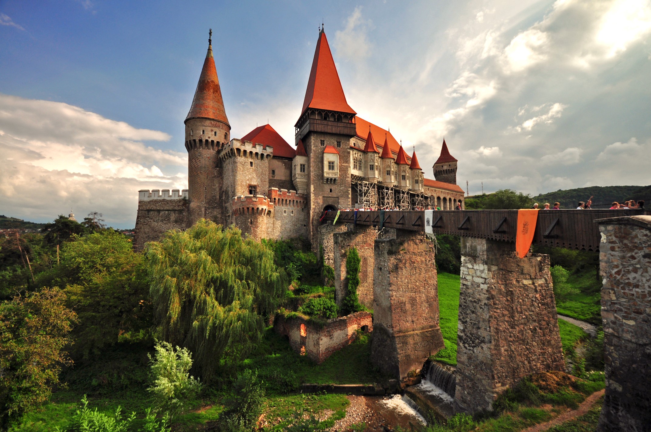 I Hunedoara ligger landets mest spektakulära slott i gotisk stil, uppfört av familjen Anjou ovanpå ett romerskt läger. Slottet användes som befästning till mitten av 1300-talet då det byggdes om till ett mycket imponerande slott och hem för vojvoden Iancu de Hunedoara med hov. Idag möter vi ett vackert bevarat slott med vallgrav, skjutbro och imposanta rum med medeltida konst och möblemang. Här smältes järn och tillverkades svärd och spjut, välkända och eftertraktade över hela Europa under 1300-, och 1400-talen. Det sägs att Vlad Tepes temporärt bodde här.