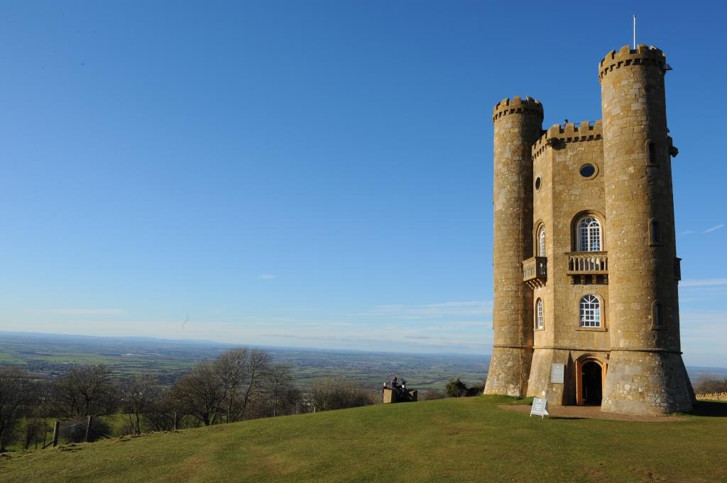 Vi äter en lunch i Cirencester och avrundar sedan med Broadway Tower, en märklig skapelse underbart placerad i landskapet för vidsträckta vyer över ett kulligt landskap. Den kände 1700-tals landskapsdesignern Capability Brown och James Wyatt ritade ett torn såsom en dramatisk utkikspost längs en förhistorisk handelsrutt, 1798. Detta ”saxiska torn” blev ett excentriskt sammelsurium av arkitektoniska detaljer som små torn, vattenkastare och balkonger.