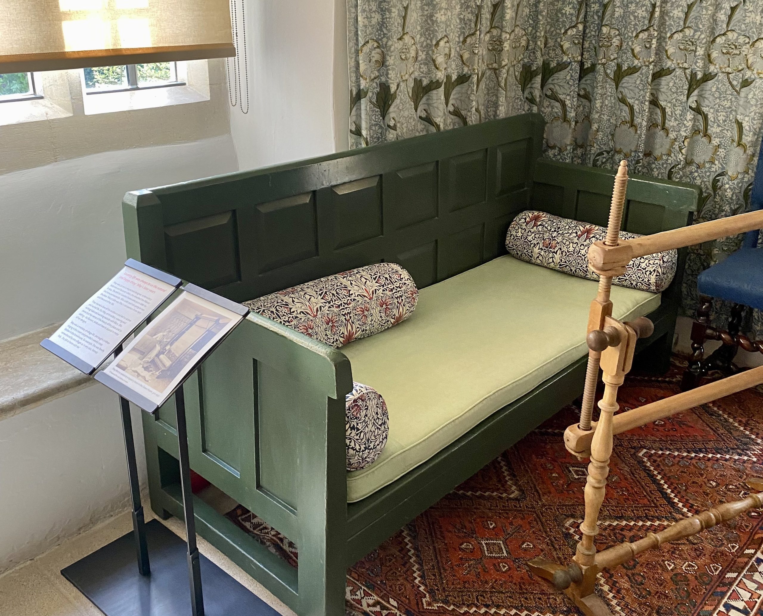 Tidig morgon beger vi oss västerut till London och på flygplatsen möter vi upp vår buss för att direkt ge oss ut i William Morris värld – en engelsk viktoriansk konstnär, poet och politisk aktivist. Som kreativ verkställare av drömmar var Morris mycket produktiv efter att ha övergett en karriär som arkitekt efter sina studier på Exeter College i Oxford. Förutom tapeter och möbeltyger designade han möbler, glasfönster och bokomslag.